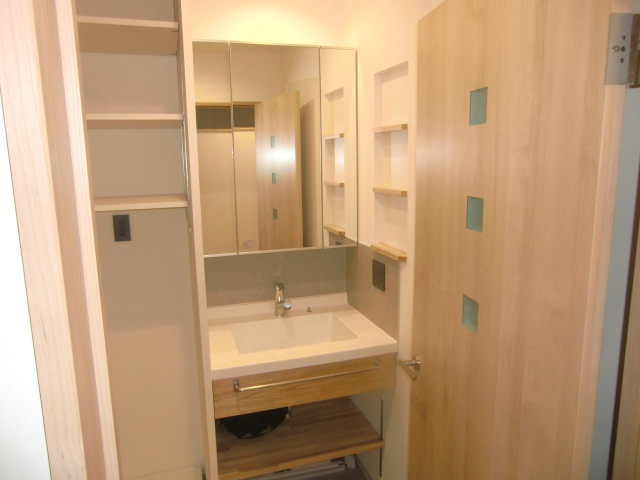 洗面には エクレアパーツの洗面器 を組み合わせ、日常の中にちょっとした上質感を添えました。